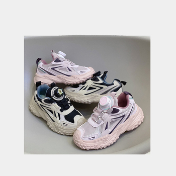Customized New Style Children's Rotating Buckle Sports Shoes for Girls Dads Trendy Big Kids Autumn Breathable Basketball Shoes